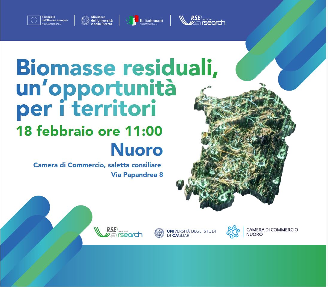 Siamo lieti di invitarVi all'evento "Biomasse residuali, un'opportunità per i territori" che si terrà a Nuoro mercoledì 18 febbraio alle ore 11:00 presso la saletta consiliare della Camera di Commercio di Nuoro (Via Papandrea 8).