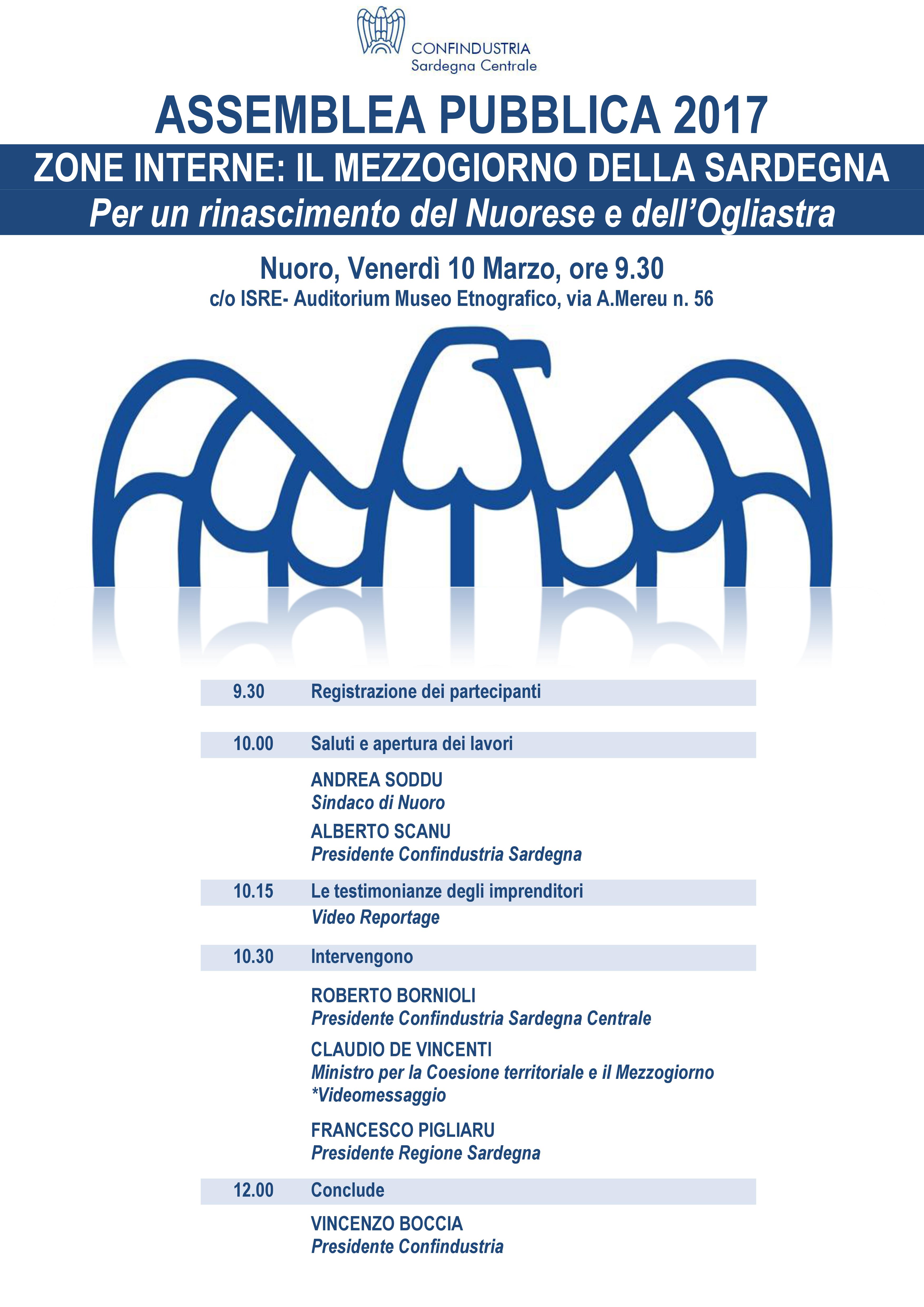 ASSEMBLEA PUBBLICA | Nuoro, 10 marzo 2017 | Si è tenuta stamattina l'Assemblea pubblica dell'Associazione "Zone interne. Il Mezzogiorno d'Italia. Sei proposte per un rinascimento delle zone interneCLICCA QUI