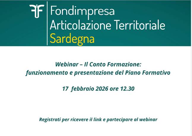 Martedì 17 febbraio 2026, alle ore 12:30, si terrà un webinar della durata di 1 ora dedicato alla conoscenza di Fondimpresa e alle modalità di presentazione del Piano Formativo a valere sul Conto Formazione.