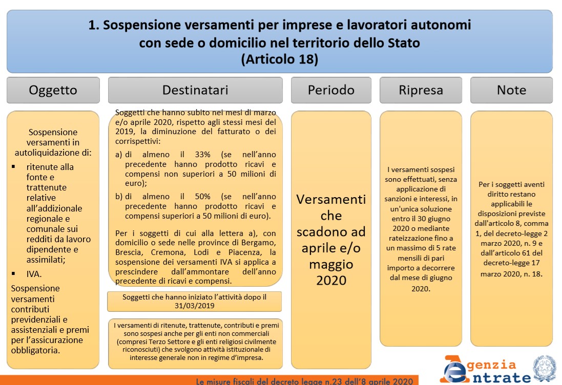 Per quanto riguarda i versamenti di aprile e maggio 2020, le disposizioni prevedono: