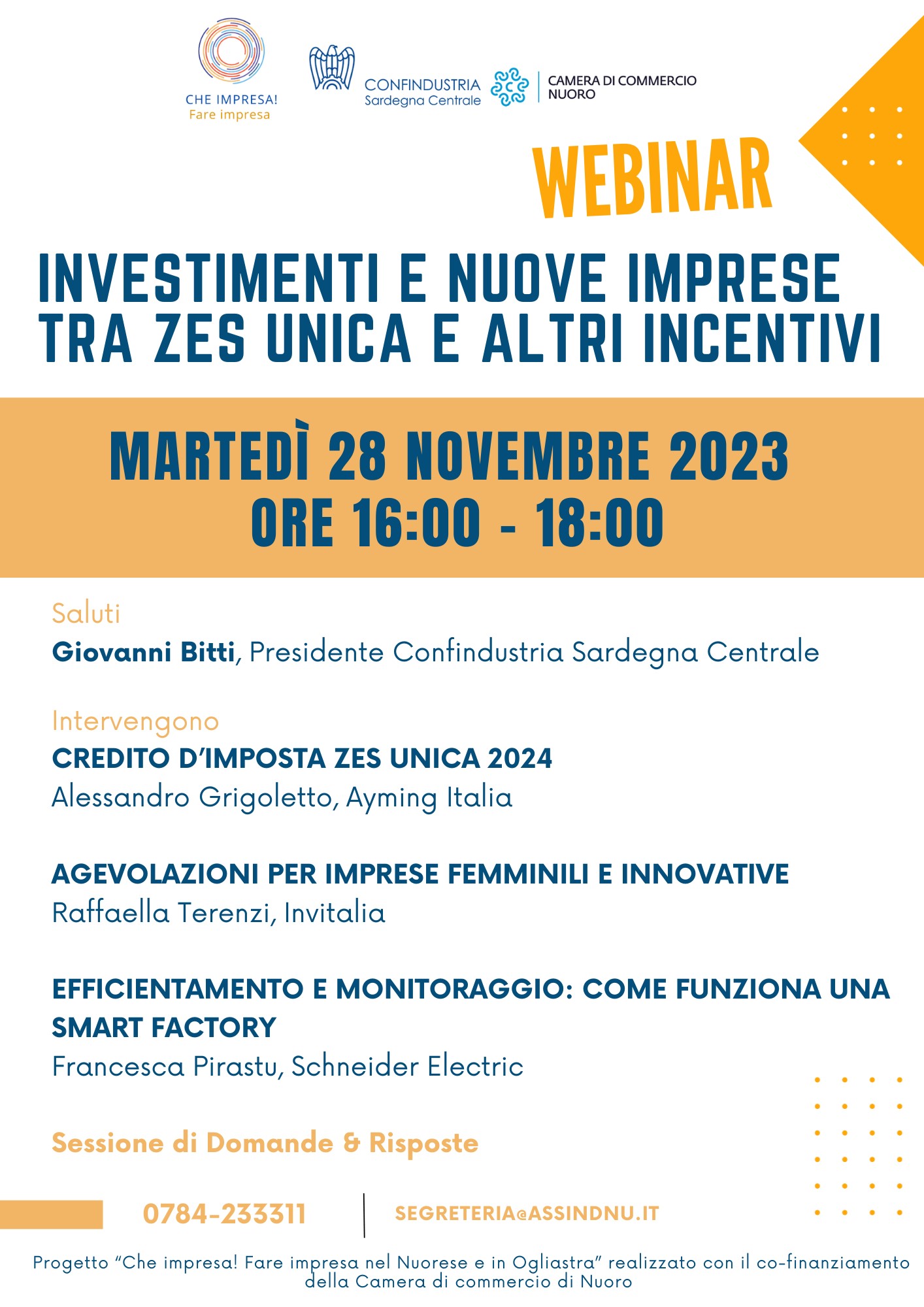 WEBINAR ZES unica e altri incentivi - Martedì 28 novembre CHE IMPRESA! Fare impresa