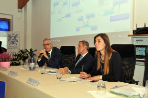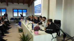 Il tavolo dei relatori: da sinistra Pier Luigi Piredda, Pietro Pittalis, Daniela Falconi, Roberto Bornioli, Francesco Pigliaru, Davide Ferreli, Nicola Pirina, Tonio Pillonca