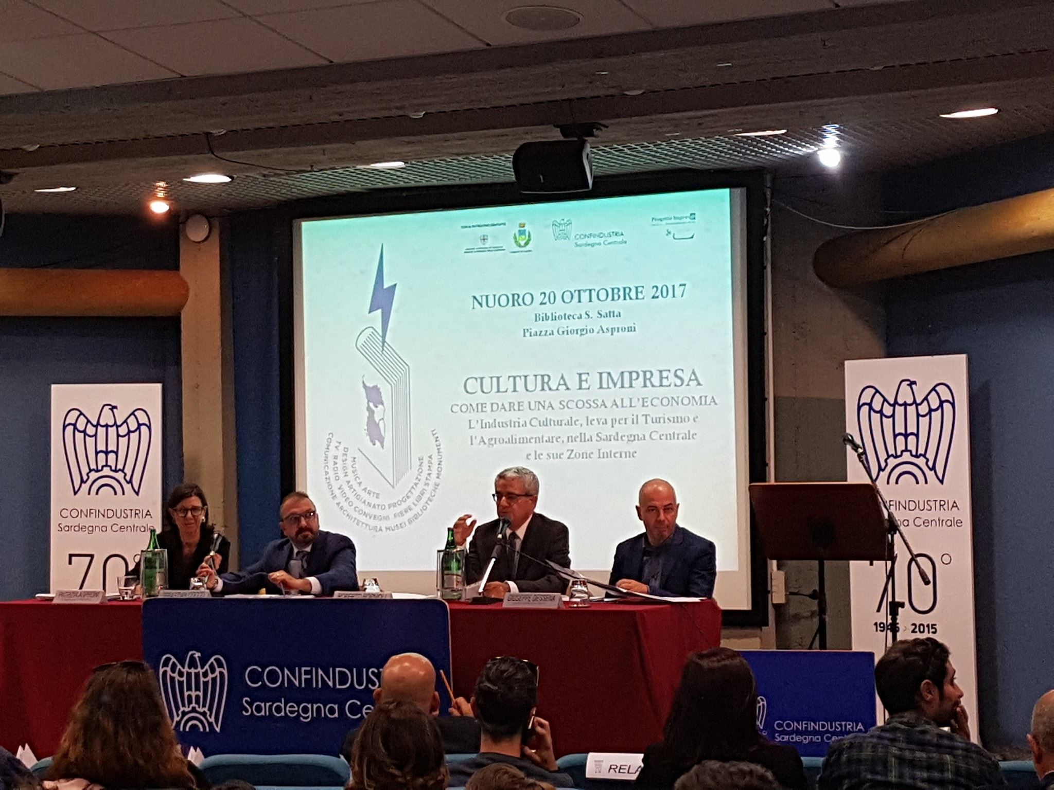 Buongiorno a tutti e benvenuti alla seconda edizione di un appuntamento al quale tengo tantissimo. Ringrazio gli imprenditori presenti, le Autorità, i relatori che interverranno stamattina portando contributi di qualità alla nostra riflessione. Siamo lieti di essere qui oggi in un luogo simbolo della cultura nuorese, la Biblioteca Satta, un’istituzione storica, che ringrazio per l’ospitalità. Siamo consci delle difficoltà che sta attraversando l’ente e avremo modo di parlarne durante la giornata. In questi anni abbiamo organizzato numerosi eventi e iniziative su vari temi. Tra quelli che ricordo con più piacere e soddisfazione c’è il convegno che abbiamo organizzato qui a Nuoro a gennaio del 2014 sul tema delle industrie culturali. E ciò per varie ragioni: considerevole attenzione e interesse del pubblico e dei media, la presenza di relatori di grande qualità, e per aver dato voce alle aziende locali. E poi per il tema proposto, quello delle imprese culturali e della cultura come occasione di sviluppo per il territorio, un tema che ho posto al centro dell’azione politica della mia Presidenza, un tema certamente innovativo per la nostra Associazione, ma che ritengo strategico per la nostra economia. Siamo in un momento cruciale per la Sardegna centrale e le sue zone interne, ed è anche per questo che abbiamo pensato di proporre una seconda edizione dell’evento “Cultura e impresa”. Lo facciamo qui, in uno dei templi della cultura nuorese, nella città del premio Nobel Grazia Deledda, l’Atene Sarda. Il connubio cultura e impresa non deve sorprendere. Perché se da una parte riconosciamo il ruolo fondante che la cultura assume per lo sviluppo dell’individuo e della società, anche come espressione di democrazia e di crescita sociale, al tempo stesso non possiamo sottovalutare il contributo che la cultura può dare allo sviluppo dei territori, anche in chiave economica. In questa giornata vogliamo pertanto sviluppare un ragionamento sulle grandi opportunità che derivano dalla valorizzazione, in un’ottica economica e produttiva, dei nostri attrattori culturali, che rappresentano un volano di crescita anche per altri settori, a cominciare dal turismo.