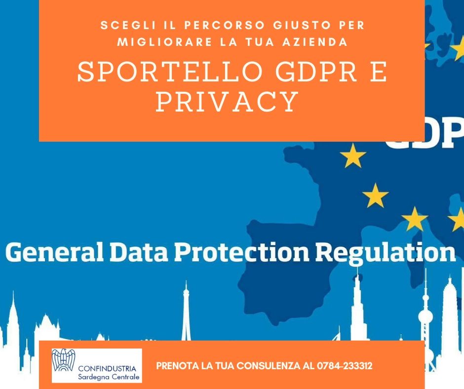 Per le aziende è fondamentale avere tutte le informazioni e gli elementi per definire un piano degli adempimenti corretti ed esaustivi in tema di Privacy e protezione dei dati, anche alla luce della novità introdotte dal nuovo Codice entrato in vigore a maggio 2018. In particolare, occorre avere a disposizione un punto di riferimento affidabile per rispondere a tutti i quesiti specifici per ogni situazione. Confindustria Sardegna Centrale non limita il suo supporto alle spiegazioni teoriche sul GDPR, ma affianca concretamente le aziende con un servizio specifico per aiutarle a capire: “Cosa fare, come farlo e come gestire le procedure previste dal nuovo GDPR Privacy”. Se hai bisogno di assistenza sugli adempimenti necessari per essere in regola con la normativa sulla privacy contatta gli Uffici dell'Associazione: 0784-233311.
