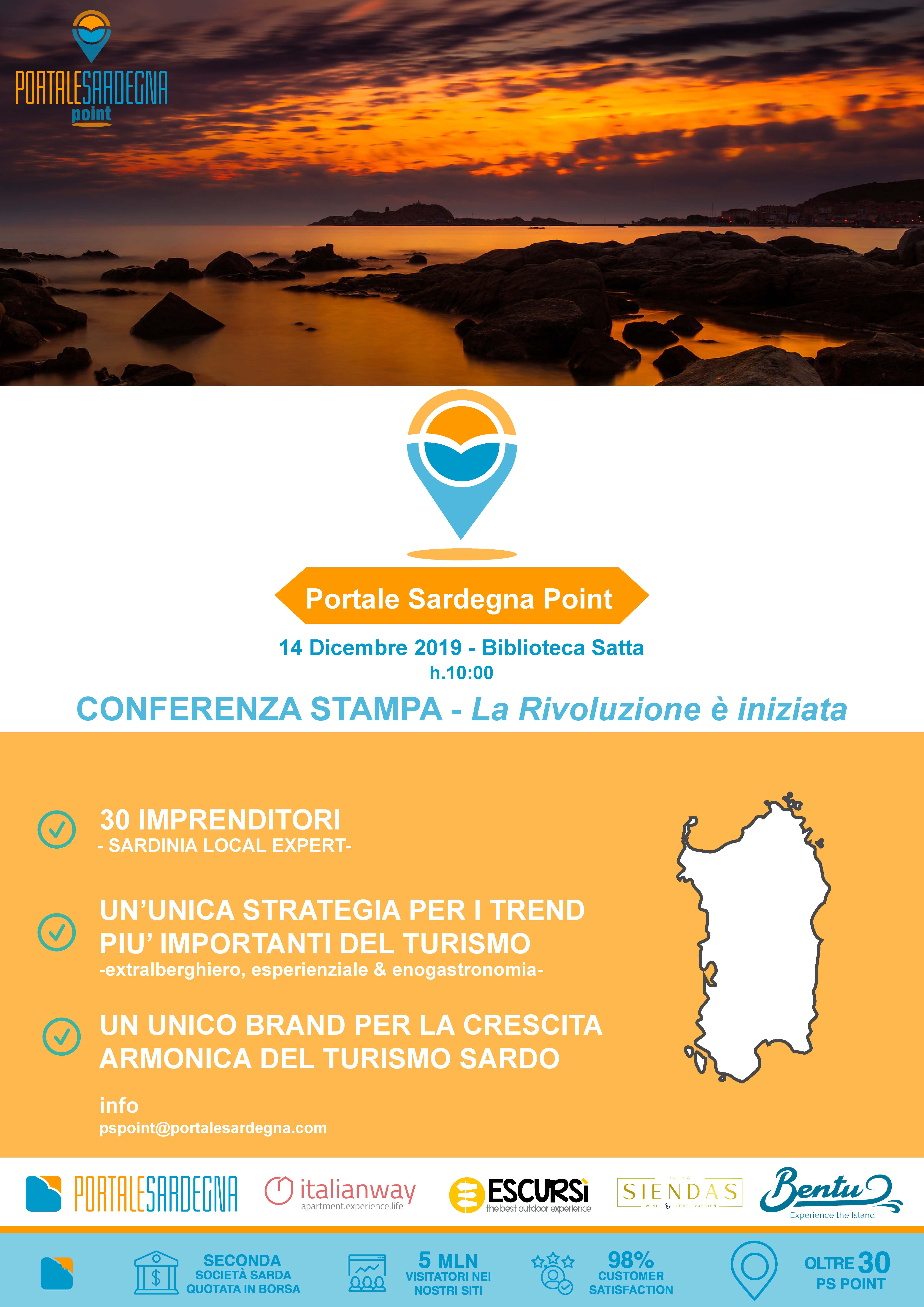 Sabato 14 dicembre alle ore 10 Portale Sardegna Group, società quotata in borsa sul mercato AIM Italia, presenta il progetto Portale Sardegna Point. L'appuntamento è all’auditorium della biblioteca Satta a Nuoro. Tutti gli imprenditori sono invitati a partecipare. Sarà l'occasione per condividere un progetto turistico ambizioso che intende creare un nuovo modello di sviluppo sostenibile per le comunità locali. Questo progetto è un tassello fondamentale per raggiungere tale scopo, ponendosi l’obiettivo di sviluppare sotto un’unica regia coordinata tre settori in grande espansione: extralberghiero, turismo esperienziale e enogastronomia.