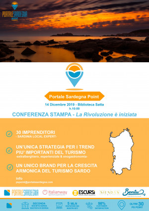 Sabato 14 dicembre alle ore 10 Portale Sardegna Group, società quotata in borsa sul mercato AIM Italia, presenta il progetto Portale Sardegna Point. L'appuntamento è all’auditorium della biblioteca Satta a Nuoro. Tutti gli imprenditori sono invitati a partecipare. Sarà l'occasione per condividere un progetto turistico ambizioso che intende creare un nuovo modello di sviluppo sostenibile per le comunità locali. Questo progetto è un tassello fondamentale per raggiungere tale scopo, ponendosi l’obiettivo di sviluppare sotto un’unica regia coordinata tre settori in grande espansione: extralberghiero, turismo esperienziale e enogastronomia.