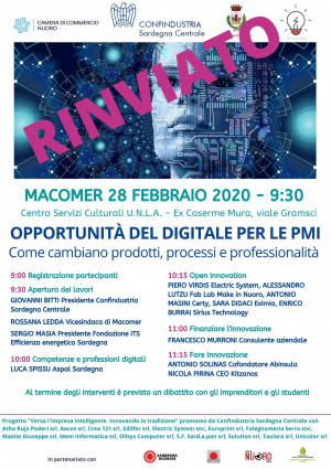RINVIO Evento Macomer Venerdì 28 febbraio 2020 "Opportunità del digitale per le PMI"