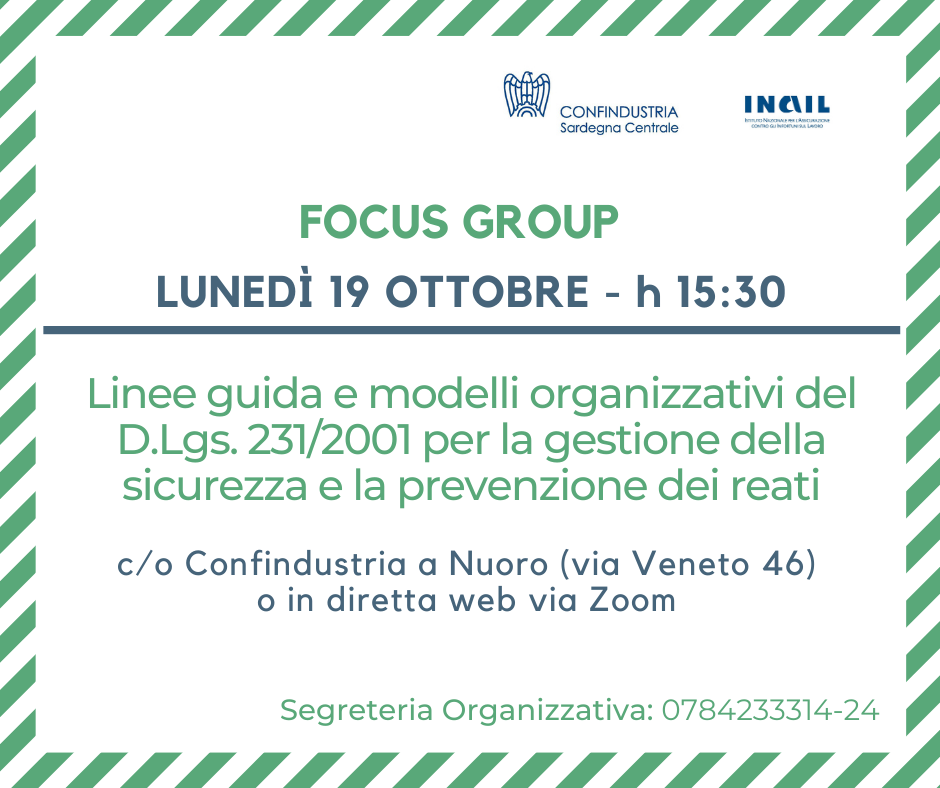FOCUS GROUP Modelli organizzativi per la sicurezza in azienda ex D.Lgs. 231/2001