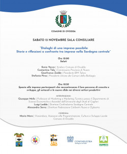 Sabato prossimo a partire dalle ore 10.00 presso la Sala Consiliare del Comune di Ovodda si terrà un convegno dal Titolo " Dialoghi di una impresa possibile: Storie e riflessioni tra imprese nella Sardegna Centrale.