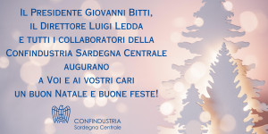 Il Presidente Giovanni Bitti, il Direttore Luigi Ledda e tutti i collaboratori augurano alle aziende associate, agli imprenditori, alle loro famiglie e a tutti i collaboratori buone feste. Gli Uffici resteranno chiusi dal 2 al 5 gennaio 2024.